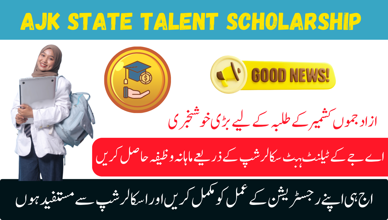 Good News AJK State Talent Scholarship Announce 2026 | Apply Now: Great news for students of Azad Jammu and Kashmir: The government of Azad Jammu and Kashmir has announced a AJK State Talent Scholarship 2026, under which the registration process has started. Under this program, students will be provided with a monthly stipend, free books and stipend for basic necessities.